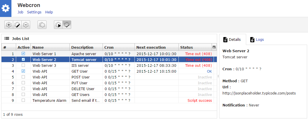 With Webcron, you can schedule HTTP requests or REST services to monitor servers or web APIs